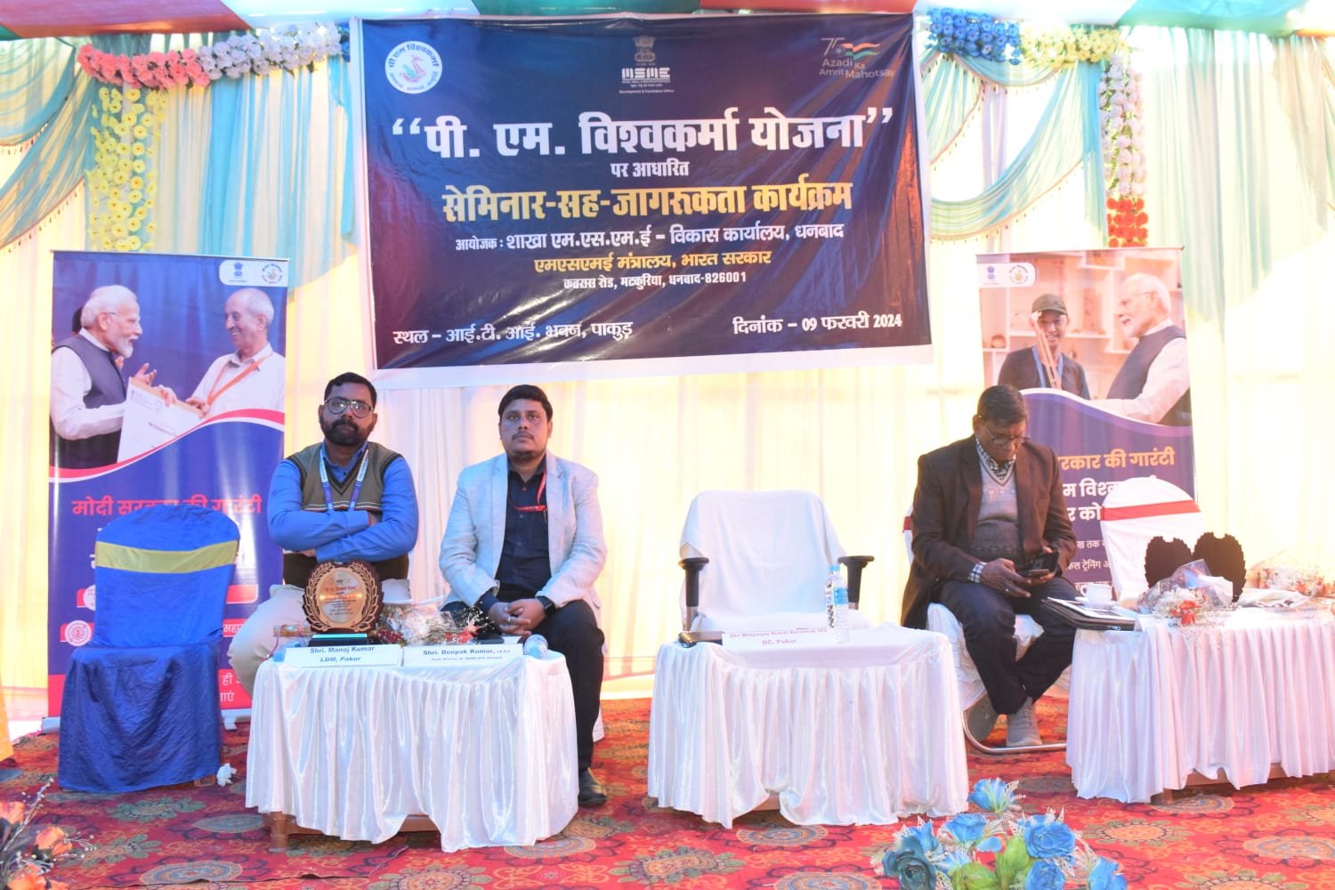 भारत सरकार, एमएसएमई मंत्रालय के शाखा एमएसएमई -विकास कार्यालय,धनबाद द्वारा पाकुड़ जिले में पीएम विश्वकर्मा योजना पर आधारित एक दिवसीय जागरूकता कार्यक्रम आयोजित किया गया। इस कार्यक्रम का मुख्य उद्देश्य लाभार्थियों को योजना से मिलने वाले लाभ, पात्रता एवं आवेदन की प्रकिया इत्यादि के बारे में वृहद रूप से जानकारी देना एवं जागरुक करना है।