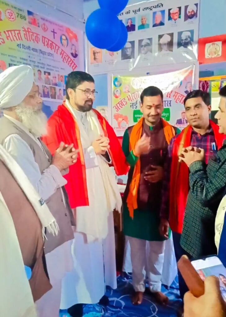 बिहार राज्य के समस्तीपुर जिले अंतर्गत ताजपुर भेड़ोखड़ा ग्राम स्थित अखंड भारत वैदिक पत्रकार महासंघ नई दिल्ली न्यास राष्ट्रीय कार्यालय में पत्रकारों के हितों में प्रेस वार्ता की गई। देश की महामहिम राष्ट्रपति द्रोपदी मुर्मू को देश के तमाम पत्रकारों के हितों में भेजे गए आवेदन पत्र को लेकर बृहत वार्ता और संवाद किया गया।संगठन के राष्ट्रीय अध्यक्ष गोपाल पोद्दार पत्रकार द्वारा भारत कि महामहिम राष्ट्रपति को दिए गए आवेदन के बारे में जानकारी दिया गया। बताया कि भारत के संविधान में यह लिखा गया है कि पत्रकार प्रजातंत्र का चौथा स्तंभ है।कार्यपालिका, विधायिका, न्यायपालिका की तरह पत्रकारों को भी हर सरकारी सुविधा देने की बात भी संविधान में लिखा जाए।संगठन सूचित करता है कि आगामी16 जनवरी 2025 तक अपने स्तर से दोनों मांगे संविधान में अंकित कर दिया जाए इसके लिए पत्रकार परिवार सदैव आभारी रहेगा।मांगे पूर्ति नहीं की जाती है तो कर्पूरी जी की पुण्यतिथि आगामी 17 फरवरी 2025 से चरणबद्ध आंदोलन चलाया जाता रहेगा।मांगे पूरी होने तक आंदोलन जारी रहेगा। कार्यालय में प्रभु यीशु मसीह और श्रेष्ठ छात्र बरकत बरकाती का जन्मोत्सव मनाया गया। संस्था के राष्ट्रीय संरक्षक झारखंड राज्य के गोड्डा जिले महागामा विधानसभा क्षेत्र के फूलचंद कुमार,सुप्रीम कोर्ट के अधिवक्ता नीरजदत्त गौड़,जम्मू कश्मीर के अशफाक नजीर,छत्तीसगढ़ से राजेंद्र प्रसाद पोद्दार, कोलकाता के राम सकल पोद्दार,उत्तर प्रदेश के राहुल प्रजापति,गुजरात के लाल पाठक,महाराष्ट्र के सनातन शाह,उड़ीसा के जस्टिन राय,नई दिल्ली के हरेंद्र कौशल, हरियाणा के अनिल पोद्दार सुमन,बिहार के वीरेंद्र पासवान,मध्य प्रदेश के गोपालचंद्र शर्मा,तमिलनाडु के श्रीनिवासन,कर्नाटक के मनीष कुमार,मणिपुर के रोशन कुमार,केरल के थॉमस एसे मणिपुर से रोशन कुमार और बिहार राज्य के श्री देवनारायण पोद्दार,असद इकबाल, राकेश कुमार,वीरेंद्र राम, नीरज शर्मा,रमेश कुमार,त्रिलोक कुमार झा,सत्यम कुमार यादव, कुमार अस्मित,अविनाश कुमार यादव,आदित्य कुमार सिंह,कन्हैया कुमार पांडेय,राम अयोध्या राम,इरफान कुरैशी,विनोद कुमार सिंह,अजय कुमार गुप्ता,प्रोफेसर सुनीता कुमारी आदि ने संबोधित किया।
