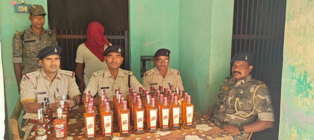 दिनांक-12.10.2025 को संध्या गश्ती के क्रम में समय करीब 18.30 बजे गुप्त सूचना मिली कि डेरमा मोड़ से कुर्मा जाने वाली रोड में एक व्यक्ति अवैध अंग्रेजी शराब लेकर बिहार जा रहा है। उक्त सूचना के आधार पर पुलिस अधीक्षक महोदय के निर्देशानुसार लोचनी मोड़ पर चेकिंग लगाये। चेकिंग के क्रम में समय करीब 19:15 बजे लोचनी मोड़ पर एक मोटर साईकिल पर सवार व्यक्ति पीठ पर बैग लिए आ रहा था तथा पुलिस पार्टी को देखकर वह व्यक्ति मोटर साईकिल घुमा कर भागने का प्रयास करने लगा, जिसे सशस्त्र बल के सहयोग से दौड़ाकर मोटर साईकिल सवार व्यक्ति को पकड़ा गया। पकड़ाये गये व्यक्ति का नाम व पता पूछने पर अपना नाम कानदेव यादव उम्र करीब 45 वर्ष पिता स्व० चिंतामन यादव सा० तिलवाड़ी थाना धोरैया जिला बांका (बिहार) बताये। पकड़ाये व्यक्ति के पीठ पर काले रंग का बैग को चेक करने पर रॉयल स्टैग 375ML का 39 बोतल, Blender pride 375ML का 3 बोतल, mc Dowells 375ML का 3 बोतल, विदेशी/अग्रेजी शराब पाया गया। उक्त शराब का वैध कागजात की मांग किया गया परंतु कोई कागजात प्रस्तुत नहीं किया गया। अवैध शराब को विधिवत जप्त किया गया तथा पकड़ाये व्यक्ति को गिरफ्तार कर न्यायिक अभिरक्षा में भेजा जा रहा है।