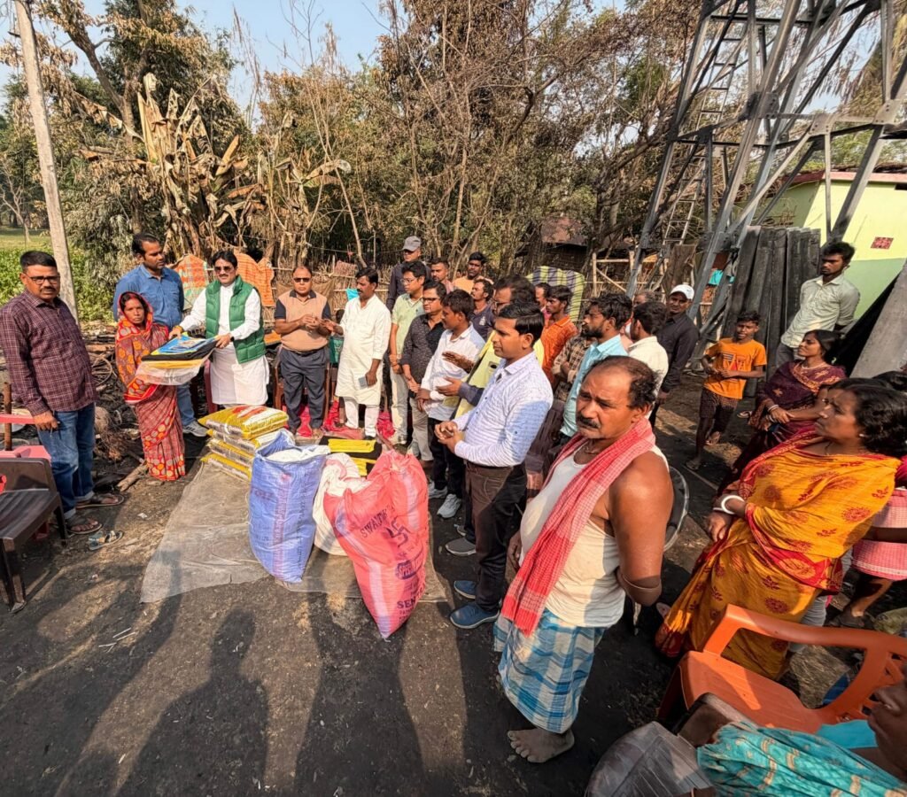 श्री यादव ने अपने निजी कोष से राहत सामग्री वितरित की। उन्होंने अग्निपीड़ित जयंत मंडल, सनातन मंडल, अरविंद मंडल और नीमचंद मंडल के परिवारों को कंबल, तिरपाल, कपड़े, चूड़ा, मुढ़ी एवं एक-एक बोरी चावल प्रदान किया। उन्होंने कहा कि आपदा की इस स्थिति में प्रशासन को तत्काल राहत कार्य सुनिश्चित करना चाहिए, लेकिन अभी तक कोई सरकारी सहायता नहीं मिलना दुर्भाग्यपूर्ण है।