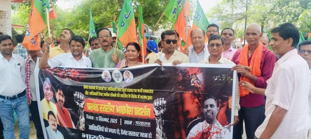 भारतीय जनता पार्टी के कार्यकर्ताओं ने शुक्रवार को प्रखंड मुख्यालय तक एक दिवसीय आक्रोश प्रदर्शन किया। प्रदर्शन का नेतृत्व बरहरवा मंडल अध्यक्ष संजय कुमार गुप्ता ने किया तथा कार्यक्रम के प्रभारी भाजपा के पूर्व प्रदेश महामंत्री कमल कृष्ण भगत रहे।