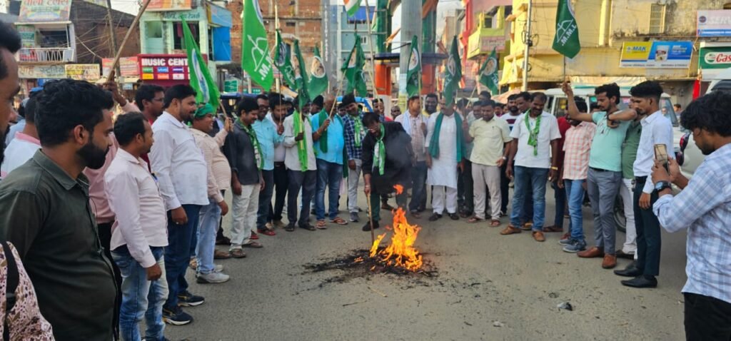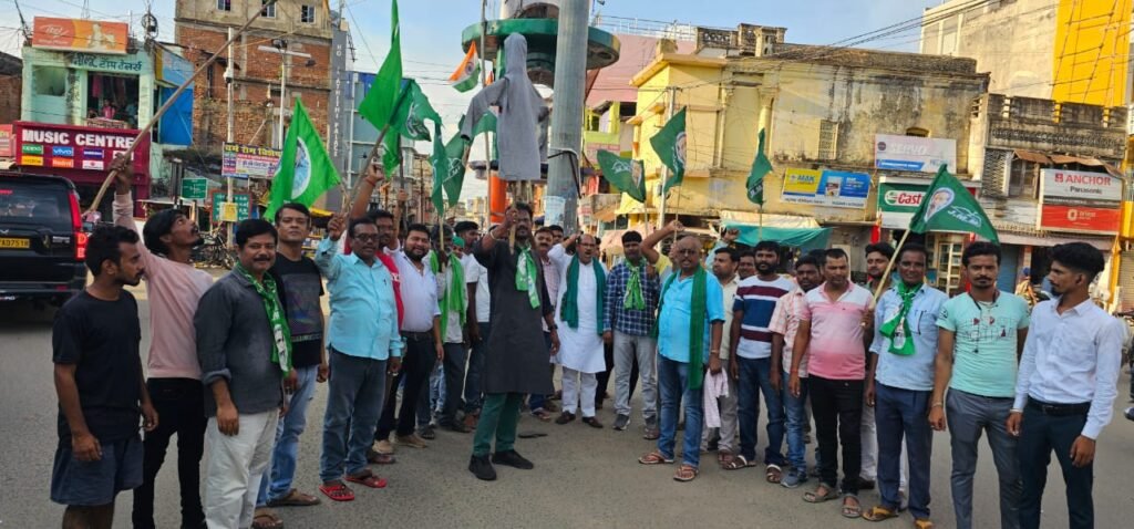 आज दिनांक 27 जुलाई 2024 को जिला झारखंड मुक्ति मोर्चा समिति गोड्डा के द्वारा ,भाजपा नेता एवं गोड्डा सांसद निशिकांत दुबे जी के द्वारा लोक सभा में षड्यंत्र के तहत झारखंड राज्य का अभिन्न अंग संथाल परगना प्रमंडल,बिहार के कुछ जिले एवं पश्चिम बंगाल के कुछ जिलों को लेकर यूनियन टेरिटरी बनाने के प्रस्ताव का आक्रोश पूर्ण विरोध करते हुवे जिला मुख्यालय के कारगिल चौक पर पुतला दहन किया गया। उपस्थित सभी नेताओ एवं कार्यकर्ताओं रोशपूर्ण प्रदर्शन करते हुए,नरेंद्र मोदी हाय हाय,बीजेपी मुर्दाबाद,गोड्डा सांसद निशिकांत दुबे हाय हाय एवं मुर्दाबाद के नारे लगाए। वही झारखंड मुक्ति मोर्चा के ताकत का आवाज लगाते हुए वीर शिबू जिंदाबाद,हेमंत सोरेन जिंदाबाद,कल्पना सोरेन जिंदाबाद,जय झारखंड,यूनियन टेरिटरी का षड्यंत्र ,नही चलेगा – नहीं चलेगा के नारे लगाए। जिला अध्यक्ष बासुदेव सोरेन ने प्रेस को संबोधित करते हुए कहा झारखंड राज्य के खनिज संपदा पर बीजेपी का गिद्ध दृष्टि है जिसे झामुमो कभी सफल होने नही देगा। केंद्रीय समिति सदस्य सह पूर्व जिला अध्यक्ष राजेश मंडल में कहा भाजपा एक षड्यंत्रकारी पार्टी है।उसकी मंशा है की किसी न किसी रूप में झारखंड के खनिज संपदा को उद्योगपतिवके हाथो कैसे नीलम करे,इसके नए नए नुक्स निकाले जाते रहे है। जिसे झामुमो भली भांति परिचित है। जिसे किसी भी सूरत में साकार होने नही देगी। वही उधोग पति के दलाल गोड्डा सांसद निशिकांत दुबे के षड्यंत्रकारी मंशा को किसी कीमत पर सफल नहीं होने दिया जाएगा। पुतला दहन कार्यक्रम में मुख्य रूप से जिला अध्यक्ष बासुदेव सोरेन, केन्द्रीय समिति सदस्य सह पूर्व जिला अध्यक्ष राजेश मंडल,जिला सचिव मो अजीमुद्दीन, कोषाध्यक्ष मृत्युंजय प्रसाद सिंह,जिला उपाध्यक्ष घनश्याम यादव,श्याम हेंब्रम,कौशलेंद्र टुडू ,गोड्डा नगर कोषाध्यक्ष सुमन कुमार,नगर संगठन सचिव फिरदौश आलम, गोड्डा सदर प्रखंड अध्यक्ष बालमुकुंद महतो,उपाध्यक्ष विकास हजारी, वरिष्ट नेता प्रेम नंदन मंडल, बीस सूत्री अध्यक्ष सोम मरांडी, सदर प्रखंड कार्यकरिब् सचिव संत लाल मरांडी, युवा झामुमो नगर नेता बड़कू अंसारी, बंटी अंसारी,इमरान अंसारी,इकबाल अंसारी,छोटू अंसारी, दिलकश अंसारी,फैयाज अंसारी, जेम्स मरांडी, श्यामल रामदास,पोड़ैयाहाट प्रखंड अध्यक्ष अवध किशोर हांसदा, केंद्रीय समिति सदस्य सह अध्यक्ष ताला बाबू हंसदा, अटाउल अंसारी, गौतम कुमार, अल्पसंख्यक मोर्चा जिला अध्यक्ष कयूम अंसारी, युवा नेता आशीष कुमार,रंजीत कुमार, अरफात आलम,सुरेंद्र कुमार,अनिल कुमार, बोरीजोर्बो प्रखंड अध्यक्ष सुनील मरांडी, सचिव निसार अहमद, माहिर अंसारी, कुर्बान अंसारी, मो आलम, युवा मोर्चा जिला अध्यक्ष चंदन हेंब्रम,राजेश हंसदा, प्रकाश म