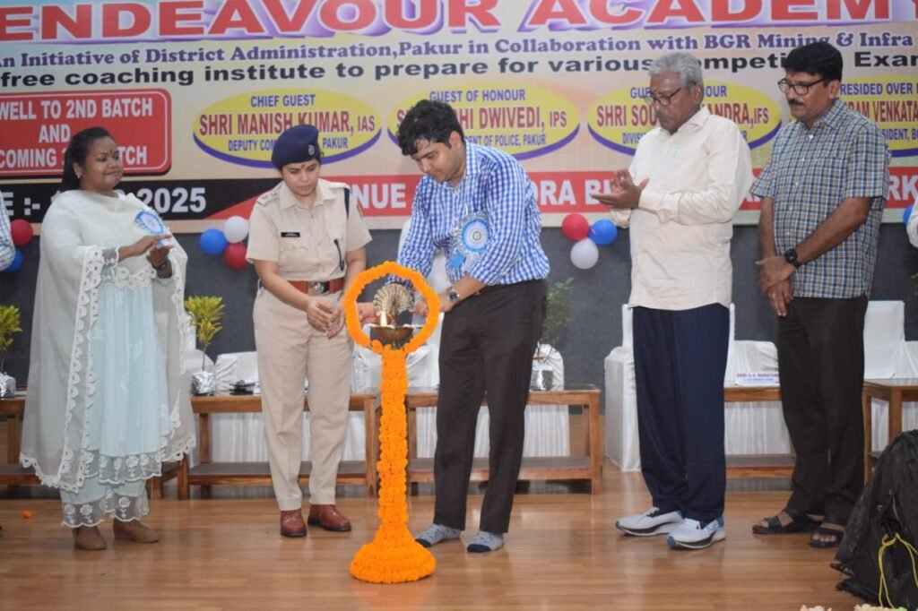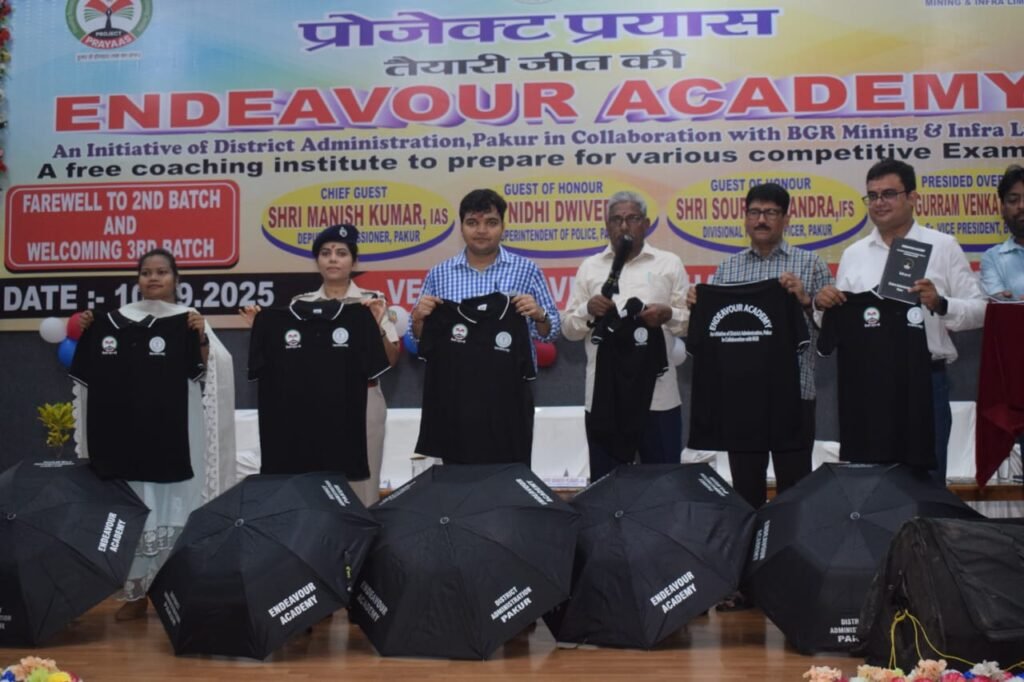 जिला प्रशासन पाकुड़ एवं बीजीआर माइनिंग एंड इंफ्रा लिमिटेड के संयुक्त प्रयास से बुधवार को रविन्द्र भवन टाउन हॉल में प्रोजेक्ट प्रयास – “तैयारी जीत की” के तहत एंडवेर अकादमी के तृतीय बैच (सत्र 2025-26) का शुभारंभ तथा द्वितीय बैच (सत्र 2024-25) के छात्रों का विदाई समारोह बड़े ही उत्साहपूर्वक आयोजित किया गया।