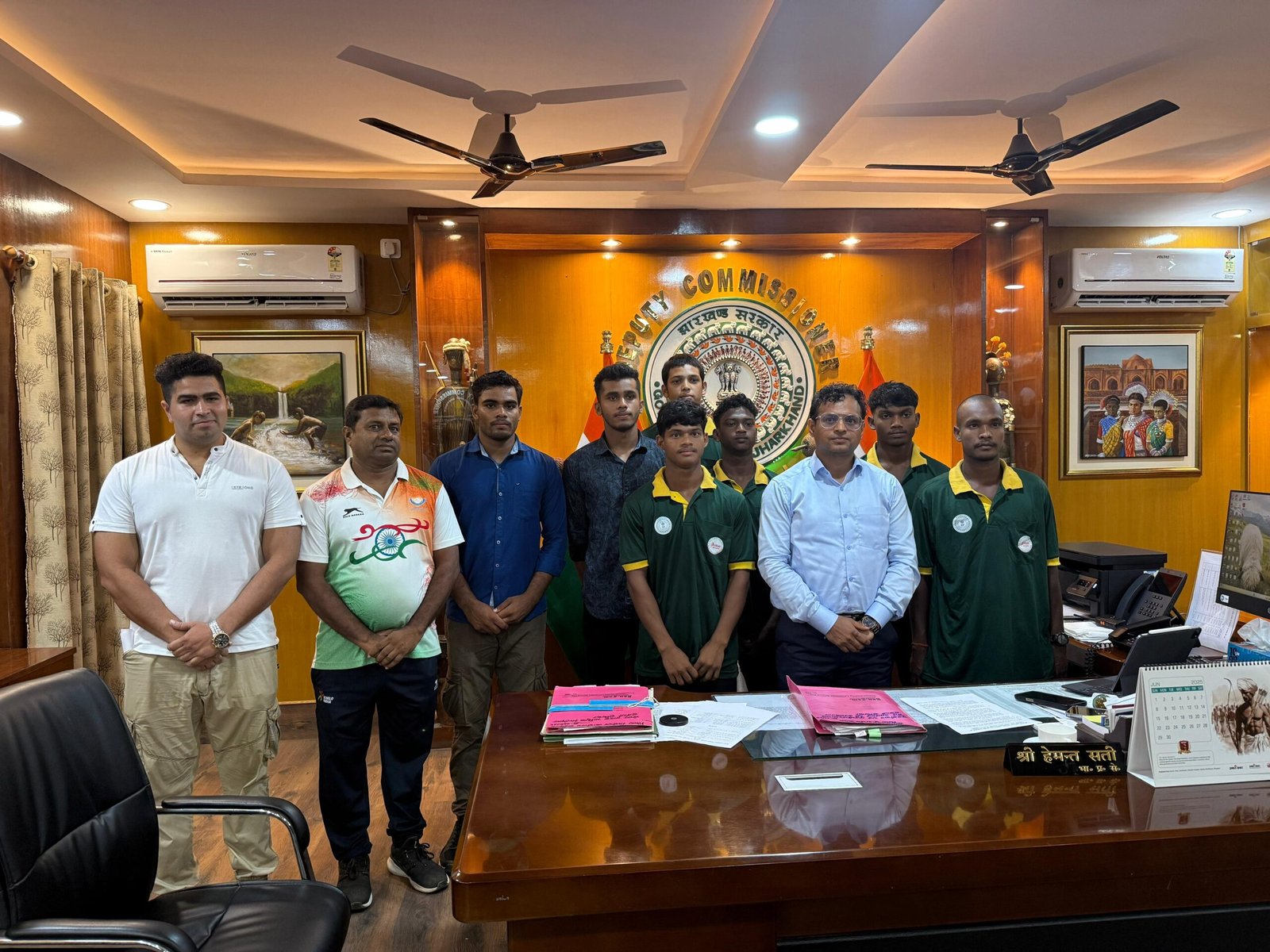 खिलाड़ियों को प्रतियोगिता एवं कैंप के लिए रवाना करने से पूर्व उपायुक्त श्री हेमंत सती ने समाहरणालय परिसर स्थित कार्यालय कक्ष में उनसे मुलाकात की। उन्होंने सभी खिलाड़ियों को शुभकामनाएँ दीं और उत्कृष्ट प्रदर्शन के लिए प्रेरित किया। श्री सती ने कहा कि जिले से खिलाड़ियों का बड़ी संख्या में राज्य टीम में शामिल होना खेल प्रतिभा की मजबूत नींव को दर्शाता है।
