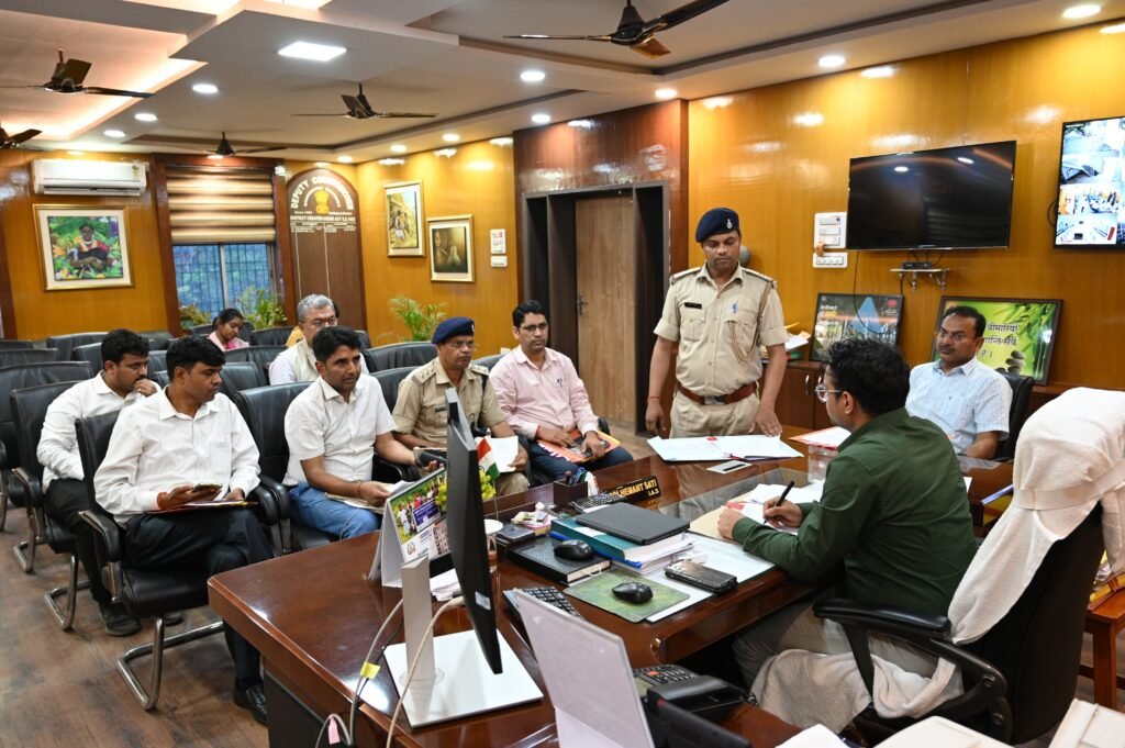 आज उपायुक्त कार्यालय प्रकोष्ठ में विधि व्यवस्था गृह रक्षक को लेकर उपायुक्त हेमंत सती के अध्यक्षता में बैठक की गई।