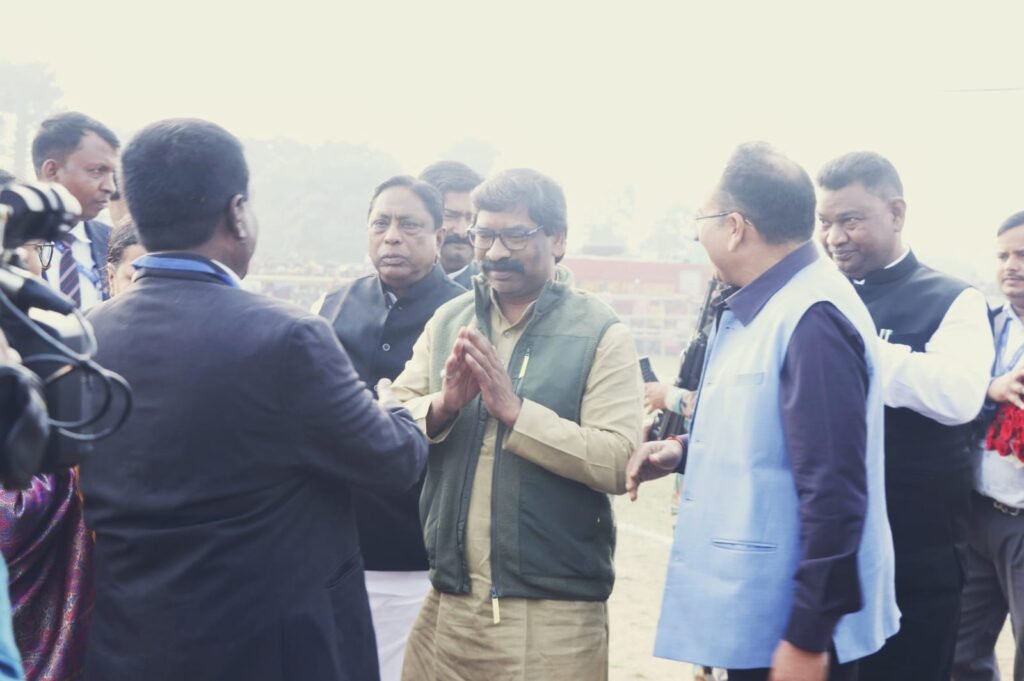 मुख्यमंत्री हेमंत सोरेन से गोड्डा आगमन के दौरान करंट खबर राष्ट्रीय हिंदी मासिक पत्रिका के प्रधान संपादक सह प्रबंध निदेशक मोहम्मद नूर हसन मुख्यमंत्री से मिलते हुए