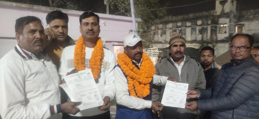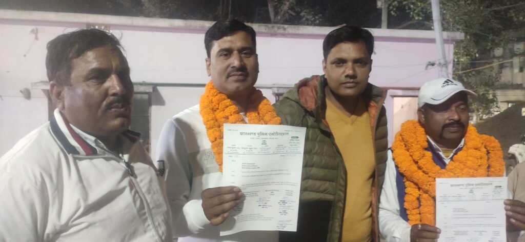 पुलिस एसोसिएशन शाखा गोड्डा का चुनाव निर्विरोध राजेश पांडेय उपाध्यक्ष करम सिंह मुंडा मंत्री बने गोड्डा में पुलिस एसोसिएशन शाखा गोड्डा का चुनाव शांतिपूर्ण वातावरण में हुआ संपन्न राजेश पांडेय निर्विरोध उपाध्यक्ष पद के लिए चुने गए वहीं सचिव पद के लिए ए एस आई करम सिंह मुंडा दूसरे प्रत्याशी के बीच काफी कड़ा मुकाबला रहा कुल 275 मत था जिसमें 155 मत पड़े कर्म सिंह मुंडा को 72 मत प्राप्त हुआ वहीं एस आई अशोक कुमार दुबे को 71 मत प्राप्त हुआ है वहीं करम सिंह मुंडा एक मत से विजय घोषित किए गए एवं शांतिपूर्ण चुनाव सम्पन्न हुआ चुनाव परिणाम घोषित होते ही फूल माला से भव्य स्वागत किया गया एवं मिठाई बांटकर आपस में खुशी व सौहार्द का माहौल दिखा साथ ही चुनाव परिणाम घोषित होते ही गोड्डा जिला के सभी थाना प्रभारी व सभी पदाधिकारी के द्वारा बधाई का लगा तांता अनुशासित रहते हुए गोड्डा के सभी पुलिस पदाधिकारीयों में खुशी का माहौल दिखा