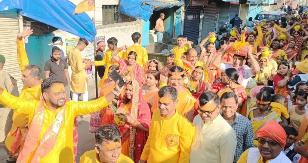 गिरिडीह —- मंगलवार को गिरिडीह शहर के ह्रदय स्थली बरमसिया में नवनिर्मित श्री मृत्युंजय शिव मंदिर के चार दिवसीय अनुष्ठान में हज़ारों की संख्या में महिला पुरुष शामिल हो कर कलश यात्रा निकाली । यह कलश यात्रा बरमसिया शिव मंदिर से निकलकर साईं मंदिर, मकतपुर, काली बाड़ी, टॉवर चौक होते हुए अरगाघाट नदी पर पहुँची । इस कलश यात्रा में गिरिडीह के निवर्तमान विधायक निर्भय कुमार शाहाबादी की ओर से मकतपुर रानी लक्ष्मी बाई स्कूल के पास सभी श्रद्धालुओ पर जय श्रीराम, हर हर महादेव के गुंजायमान नारो के साथ पुष्प वर्षा की गई । पुष्प वर्षा में गिरिडीह मुख्य रूप से निर्भय शाहाबादी के पुत्र वैभव शाहाबादी, कोडरमा सांसद प्रतिनिधि दिनेश यादव, ज़िला भाजपा उपाध्यक्ष संजय सिंह, दीपक स्वर्णकार, पवन शर्मा, हबलु गुप्ता, दीपक शर्मा, ओमप्रकाश गुप्ता, प्रकाश दास, सुरेश गुप्ता, बीरेंद्र वर्मा आदि उपस्थित थे । इस अवसर पर निर्भय कुमार शाहाबादी ने कहा कि सनातनी परंपरा में इस कार्य का अतिमहत्वपूर्ण स्थान है ।दैविक अनुष्ठानों से जहाँ हमारी आत्मा की शुद्धि होती है, वही ऐसे कार्यो में सेवा प्रदान करने से मन तृप्त और शुद्धता बनी रहती है । अनादि काल मे भी हमारे ऋषि मुनि भी इस सृष्टि में उत्पन्न सभी प्राणियों की सुरक्षा और सृष्टि पर ईश्वर की कृपादृष्टि बनी रहे इसके लिए तरह तरह के अनुष्ठान कार्य किया करते थे ।बीते कुछ समय से ऐसे अनुष्ठानों की महत्ता में जबरदस्त बढोतरी तथा आस्था का भाव देखने को मिल रहा है जो हमारी आगे के पीढ़ियों के लिए प्रेरणास्रोत बन रहा है । खासतोर पर ऐसे धार्मिक अनुष्ठानों में युवाओं की भागदारी जिस प्रकार देखने को मिल रहा है, वह समय दूर नही है जब सनातनी परंपरा पूरे विश्व में एक बार फिर से अपना परचम लहराने लगेगी । उन्होंने आयोजक सदस्यों को बधाई दी जो इस महा अनुष्ठान को सफलता पूर्ण संपन्न करा रहे हैं ।