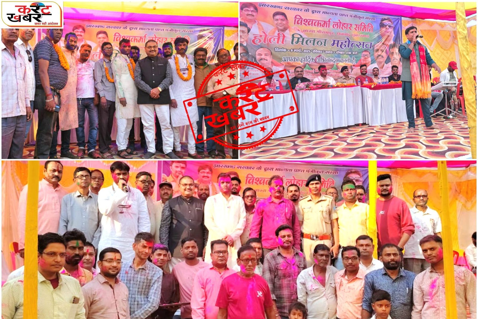 श्रीरामपुर, धनबाद : विश्वकर्मा लोहार समिति (रजि०) के तत्वावधान में श्रीरामपुर शाखा द्वारा होली मिलन समारोह का भव्य आयोजन किया गया। इस कार्यक्रम में समाज के प्रमुख पदाधिकारी, युवा मोर्चा के सदस्य और गणमान्य लोग शामिल हुए।