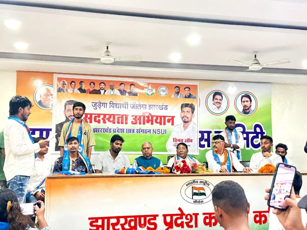 भारतीय राष्ट्रीय छात्र संगठन (एनएसयूआई) के झारखंड प्रदेश कार्यालय रांची में राजधानी के छात्र नेता अमन अली एवं वेंकटेश कुमार के नेतृत्व में सैकड़ों छात्र-छात्राओं ने गर्म जोशी के साथ संगठन का थामा दामन। बृहस्पतिवार को झारखंड प्रदेश एनएसयूआई के कार्यालय में नए सदस्यों का जोइनिंग कार्यक्रम एनएसयूआई झारखंड प्रदेश अध्यक्ष विनय उरांव के नेतृत्व में रखा गया। कार्यक्रम के संचालन छात्र नेता हुसैन अहमद ने किया। इस कार्यक्रम में मुख्य रूप से झारखंड प्रदेश कांग्रेस कमेटी के प्रदेश अध्यक्ष आदरणीय श्री केशव महतो कमलेश जी, झारखंड सरकार के वित्त मंत्री शाह सीएलपी लीडर आदरणीय डॉ.रामेश्वर उरांव जी एवं झारखंड कांग्रेस कमेटी के पूर्व प्रदेश अध्यक्ष आदरणीय श्री राजेश ठाकुर जी उपस्थित हुए और संगठन की मजबूती एवं बेहतरी के लिए मार्गदर्शन एवं आशीर्वाद दिए। कार्यक्रम में सर्वप्रथम सभी आए नए विद्यार्थियों को गुलदस्ता दिया एवं माला पहनने के साथ पार्टी का पट्टा पहनाकर स्वागत किया गया। साथी ही पार्टी का दमन थामें सभी नए विद्यार्थियों ने पूरे जोश, जज्बा और जुनून के साथ पार्टी के विचारधारा को पूरी झारखंड के सभी विद्यार्थियों तक पहुंचाने का एवं जोड़ने का प्रण लिया। मौके पर झारखंड प्रदेश कांग्रेस कमेटी के प्रदेश अध्यक्ष आदरणीय श्री केशव महतो कमलेश जी ने नए विद्यार्थियों का पार्टी में जॉइनिंग कार्यक्रम में आए सभी विद्यार्थियों का स्वागत और अभिनंदन करते हुए कहा कि छात्र संगठन कांग्रेस कमेटी एक अहम अंग है। वर्तमान प्रदेश अध्यक्ष के अगवाई में छात्र संगठन बहुत ही बेहतर तरीके से अपना काम कर रही है और हमारी तरफ से जहां भी जरूरत पड़ेगी हम सभी संगठन के साथ हैं। संगठन की मजबूती और बेहतरी के लिए हर संभव सहायता प्रदान की जाएगी। छात्र शक्ति देश के विकास में अहम भूमिका अदा करती है। साथ ही छात्र संगठन एनएसयूआई के प्रदेश अध्यक्ष विनय उरांव ने कहा कि हमारा संगठन सभी समुदाय एवं सभी वर्ग से आए सभी कार्यकर्ताओं को समान रूप से अवसर देने का काम करती है। आने वाले समय में शिक्षा के क्षेत्र में बेहतरी को लेकर छात्र संगठन एनएसयूआई प्रतिबद्धता के साथ कार्यकरेगी। मौके पर एनएसयूआई के सक्रिय एवं कर्मठ कार्यकर्ता के रूप में तनवीर राजा, अंकित शेखर, सरफराज अहमद, गुलशन, सैफ अहमद, तानिया कुमारी, शोएब अख्तर इमादुर रहमान, अर्सलान खान जुनैद खान, पीयूष पांडे, आरसलान खान, पीयूष कुमार, आदि सैकड़ो छात्राएं उपस्थित थे।