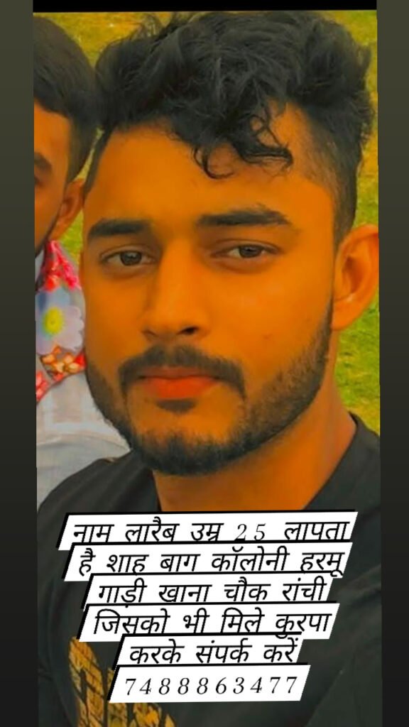 Home » लापता नाम मोहम्मद लारेब उम्र 25 वर्ष 31 दिसंबर के रात से शाहाबाद कॉलोनी हरमू रोड गाड़ी खाना चौक थाना सुखदेव नगर रांची रात्रि 12:00 से लापता है जिस व्यक्ति को इसकी जानकारी हो कृपया इस नंबर पर +91 70040 59770 फोन करें