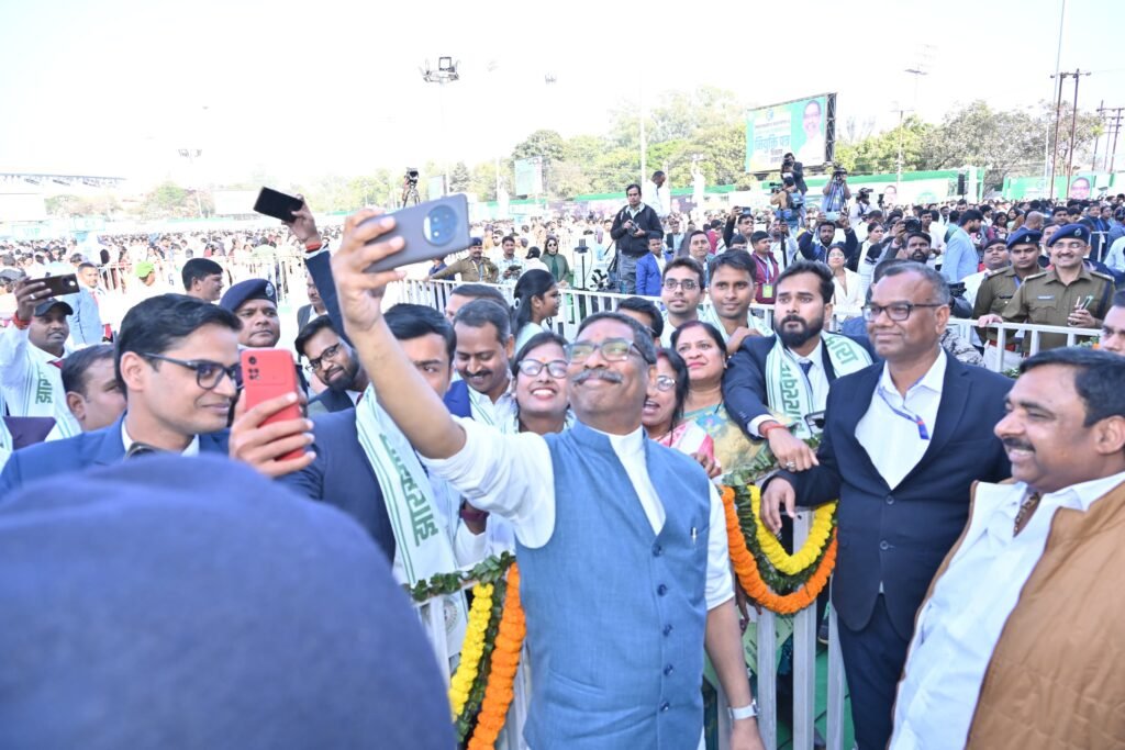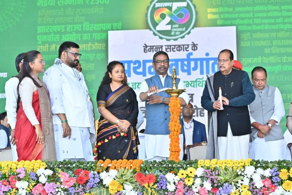 मुख्यमंत्री श्री हेमन्त सोरेन ने कहा कि 28 नवंबर 2025 को वर्तमान राज्य सरकार का 1 वर्ष का कार्यकाल पूरा हो रहा है, इस अवसर पर राज्य सरकार द्वारा यहां के 10 हजार से अधिक युवक-युवतियों को सरकारी नियुक्तियां मिल रही है। उन्होंने कहा कि सिर्फ सरकारी नौकरियां ही नहीं बल्कि स्वरोजगार के विभिन्न साधनों का भी सृजन किया जा रहा है। मुख्यमंत्री ने कहा कि हमारी सरकार रांची हेड क्वार्टर से नहीं बल्कि गांव से चलती है। “सेवा का अधिकार” कार्यक्रम के तहत हमारी सरकार योजनाओं को आपके घर आंगन तक पहुंचाने का कार्य कर रही है। आपकी समस्याओं का निदान भी आपके गांव घर पर ही किया जा रहा है। मुख्यमंत्री ने कहा कि सरकारी व्यवस्था में जो भी हक अधिकार आपको मिलना चाहिए हमारी सरकार आप तक पहुंचाने का कार्य कर रही है।