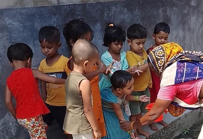 सुबह बच्चों का स्वागत प्रार्थना और व्यायाम सत्र से किया गया। इसके बाद खेल-खेल में पोषण संबंधी गतिविधियाँ कराई गईं, जिनके माध्यम से उन्हें दाल, अंडा, दूध, फल, सब्जियाँ और हरी पत्तेदार सब्जियों को रोज़मर्रा के भोजन में शामिल करने का महत्व बताया गया।