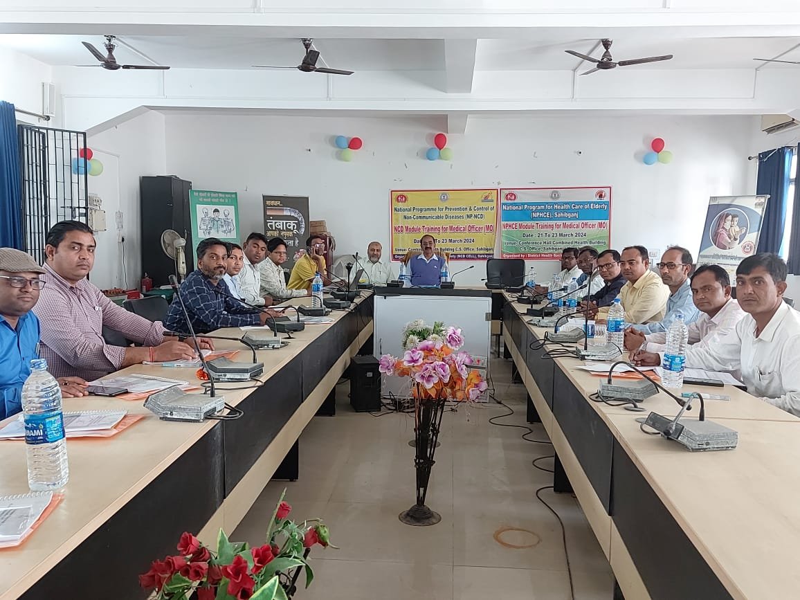जिसमे साहेबगंज जिले के सभी चिकित्सा पदाधिकारियों को सिविल सर्जन महोदय के द्वारा उच्च रक्तचाप, मधुमेह और सामान्य कैंसर (मुंह, स्तन और गर्भाशय ग्रीवा) की रोकथाम, नियंत्रण और जनसंख्या स्तर पर जांच आदि मॉड्यूल के विषय में बिस्तृत जानकारी दिए।