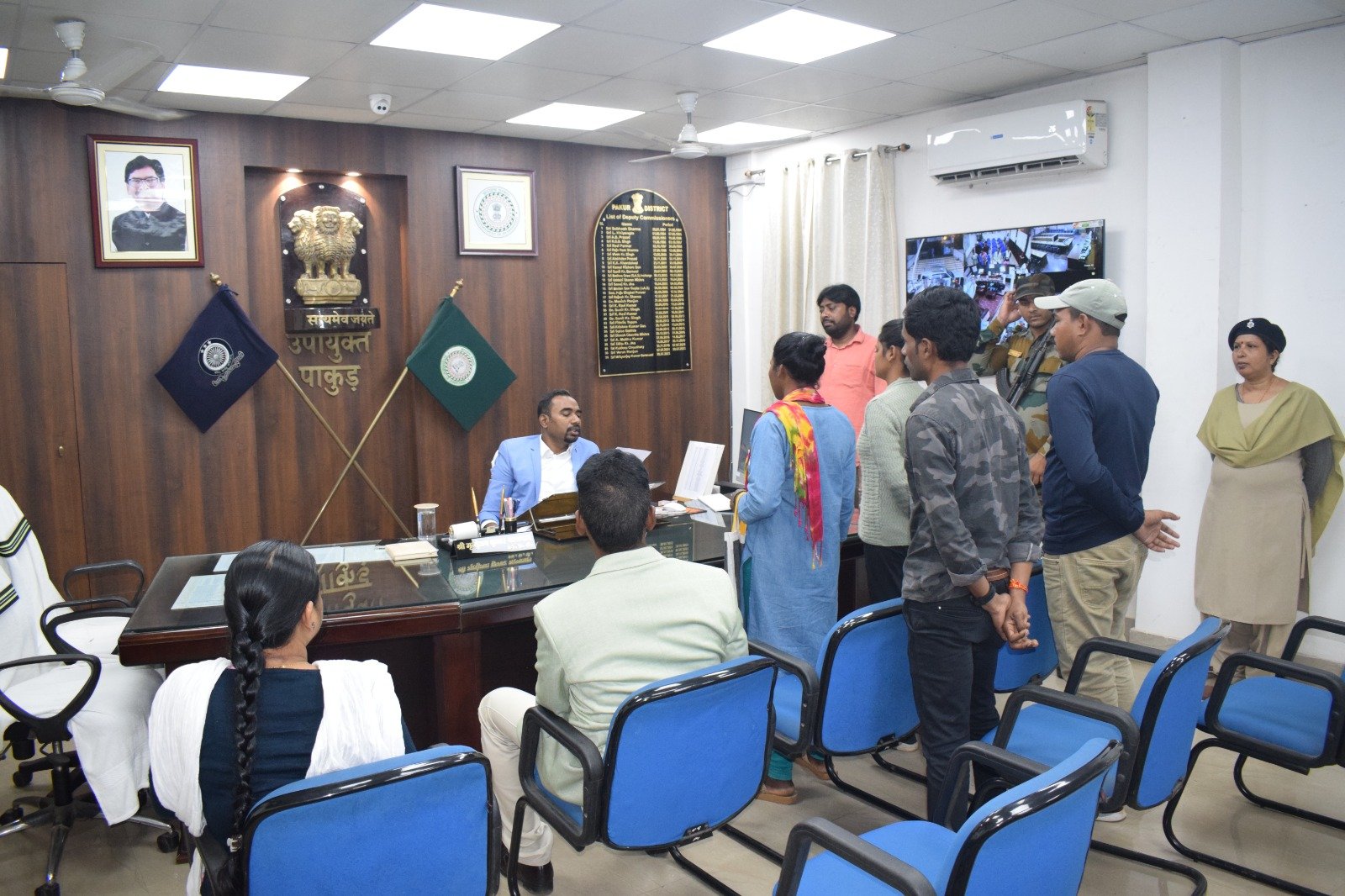 समाहरणालय स्थित अपने कार्यालय कक्ष में मंगलवार को उपायुक्त श्री मृत्युंजय कुमार बरनवाल ने जनता दरबार का आयोजन कर आमजनों की समस्याओें को सुना।