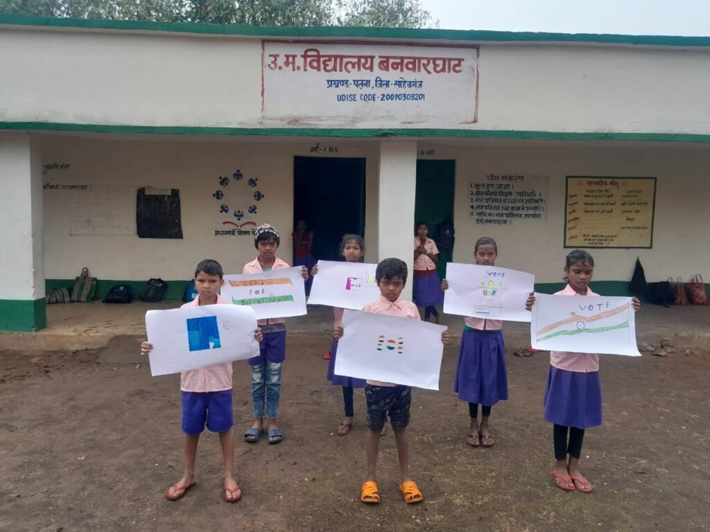 बच्चों ने 1 जून को होनेवाले लोकसभा चुनाव में अपने माता-पिता के साथ पास पड़ोसी के मतदाताओं से वोट देने की अपील करेंगे। लोकतंत्र में हर वोट किमती है।
