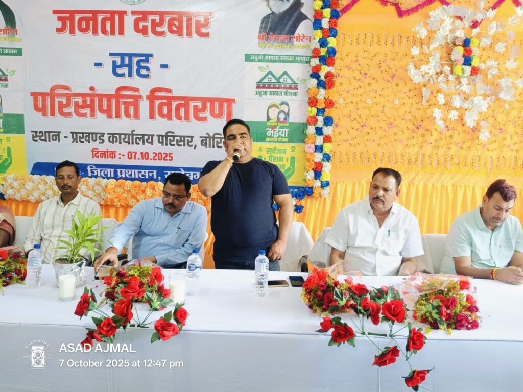 बोरियो प्रखंड मुख्यालय में आज जनता दरबार सह परिसंपत्ति वितरण कार्यक्रम का आयोजन किया गया। कार्यक्रम में बोरियो विधानसभा क्षेत्र के माननीय विधायक धनंजय सोरेन मुख्य अतिथि के रूप में उपस्थित रहे, जबकि अपर समाहर्ता श्री गौतम भगत विशिष्ट अतिथि के रूप में मंच साझा किए।