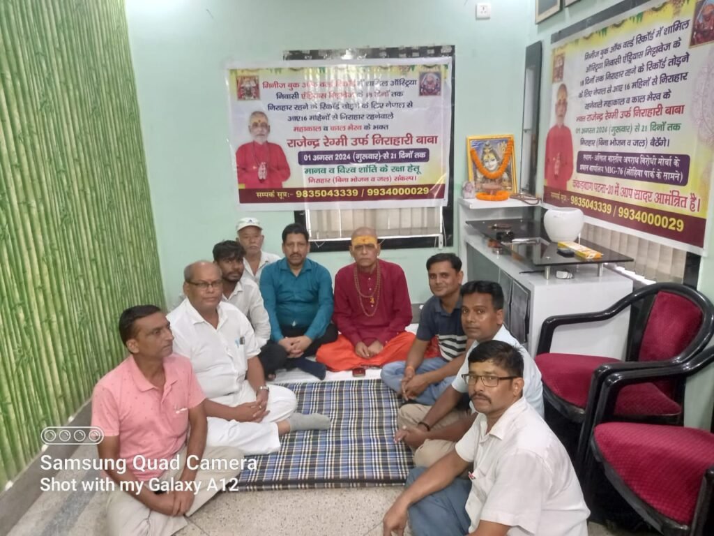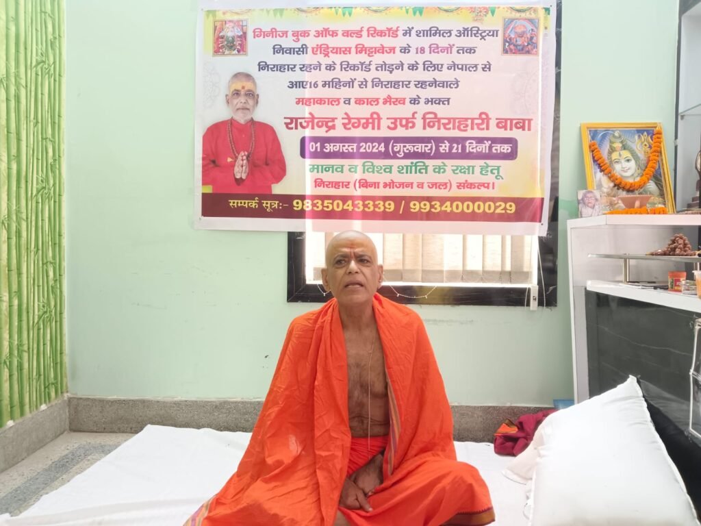 गिनीज वर्ल्ड बुक के 18 दिनो तक निराहार रहने के रिकॉर्ड को तोड़ने के लिए सोलह महीने से निराहार रहने वाले राजेंद्र रेगमी उर्फ निराहार बाबा आज से निराहार संकल्प शुरु किया।