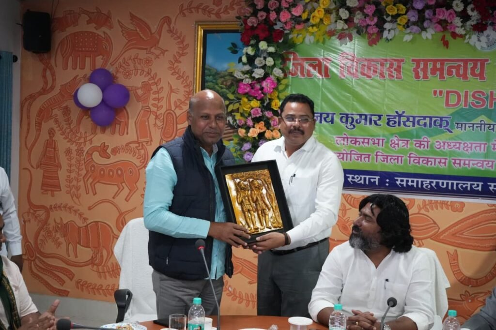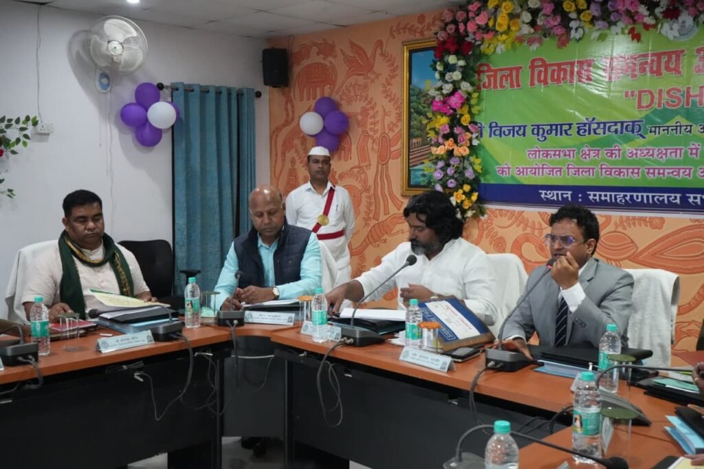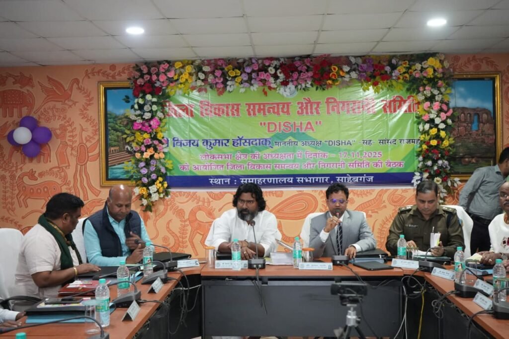 समाहरणालय सभागार में आज जिला विकास समन्वय एवं निगरानी समिति (DISHA) की जिला स्तरीय समीक्षा बैठक का आयोजन किया गया। बैठक की अध्यक्षता राजमहल के माननीय सांसद एवं DISHA समिति के अध्यक्ष विजय कुमार हांसदा ने की। बैठक का मुख्य उद्देश्य जिले में चल रही विभिन्न विकास योजनाओं की प्रगति की समीक्षा करना और उनके प्रभावी, पारदर्शी तथा समयबद्ध क्रियान्वयन को सुनिश्चित करना रहा।