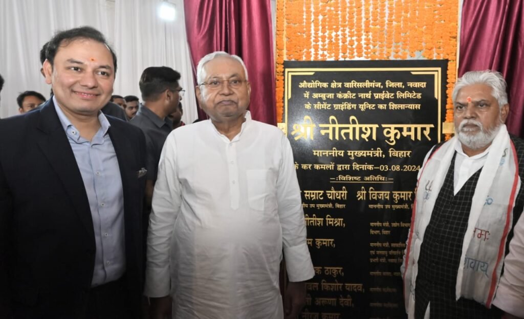 मुख्यमंत्री ने वारिसलीगंज औद्योगिक क्षेत्र में अंबुजा कंक्रीट नॉर्थ प्राइवेट लिमिटेड के सीमेंट ग्राइंडिंग यूनिट का भूमि पूजन कर किया शिलान्यास