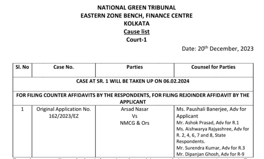 साहिबगंज। ज़िले के चर्चित सामाजिक कार्यकर्ता सह पर्यावरण प्रेमी सैयद अरशद नसर द्वारा झारखंड राज्य के एक मात्र जिला साहिबगंज से गुज़रने वाली गंगा नदी को प्रदूषित होने से व जलीय जीव जंतु व संरक्षित डाल्फिंस को बचाने हेतु सुबे के खान निदेशक,नमामी गंगा मिशन नई दिल्ली के डायरेक्टर,जिले के डीसी,डीटीओ व स्टोन बोल्डर सप्लायर मां तारा कंस्ट्रक्शन कंपनी मालदा व जी.के इंटरप्राइजेज मुजफ्फरपुर को प्रतिवादी बनाते हुए एनजीटी ईस्टर्न जोन कोलकाता बेंच में याचिका संख्या ओए संख्या -162/2023 बीते माह दायर कर एनजीटी से गुहार लगाया था कि इन लोगों के आपसी सांठ गांठ से नियम विरुद्ध तरीके से बड़े पैमाने पर स्टोन बोल्डर भेज कर गंगा नदी को प्रदुषित करने के साथ ही साथ जलीय जीव जंतु व संरक्षित डाल्फिंस को भारी पैमाने पर नुक्सान पहुंचाने के लिए इन लोगों पर कड़ी से कड़ी दंडात्मक कार्रवाई व पर्यावरणीय क्षतिपूर्ति जुर्माना लगाने की मांग की थी.जिसपर बीते माह एनजीटी के जुडिशियल मेंबर बी.अमित स्थालेकर व एक्सपर्ट मेंबर डा.अरूण कुमार वर्मा ने सुनवाई करते हुए जिले के डीसी के नेतृत्व में तीन सदस्यीय जांच समिति गठित करते हुए घटना स्थल की स्थलीय जांच कर रिपोर्ट समर्पित करने व सभी प्रतिवादियों को हलफनामा के माध्यम से जवाब दाखिल करने का आदेश पारित किया था.जिसकी आज सुनवाई होने वाली थी जो अपरिहार्य कारणों से कोर्ट के नहीं बैठने के चलते अब इस मामले की सुनवाई अगले वर्ष 6 फरवरी को होगी.सुनवाई टलने से पुलिस प्रशासनिक अधिकारियों व पत्थर कारोबारियों ने जहां एक तरफ़ राहत की सांस ली तो दुसरी तरफ़ पर्यावरण प्रेमियों में मायुसी छा गई.अब सबकी निगाहें 6 फरवरी की सुनवाई तिथि पर टिक गई है.