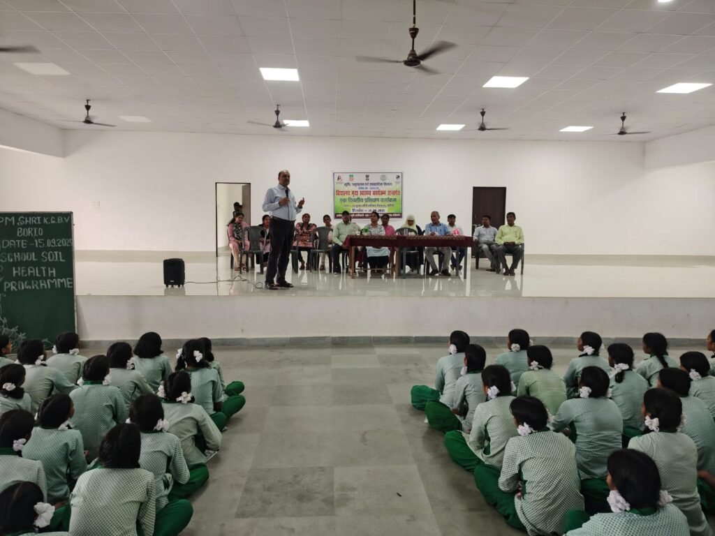 स्कूल स्वॉल हेल्थ प्रोग्राम के अंतर्गत आज पीएम श्री केजीबीवी स्कूल, बोरियो में एक दिवसीय प्रशिक्षण कार्यक्रम का आयोजन किया गया। इस कार्यक्रम का मुख्य उद्देश्य छात्र-छात्राओं एवं शिक्षकों को मृदा स्वास्थ्य के महत्व और इसके संरक्षण से संबंधित वैज्ञानिक जानकारियाँ उपलब्ध कराना था।
